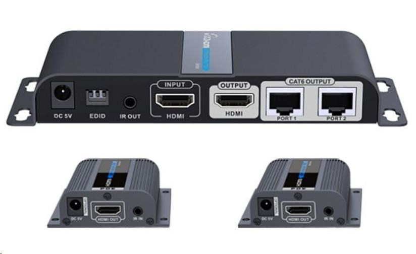 - Výstupy: 1x miestny HDMI výstup a vysielač, 2 x HDMI výstupy (typ A) na prijímačoch