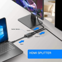 | pokyny na zapojenie: | 1) Pripojte vstup HDMI rozdeľovača HDMI pomocou kábla HDMI k zdroju signálu a výstup pripojte k zobrazovacej jednotke alebo monitoru. Ak sa obraz nezobrazí ihneď po zapojení rozbočovača, počkajte približne 30 s, kým sa rozpozná signál HDMI. |