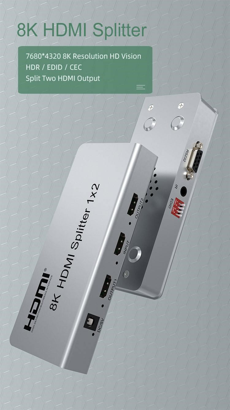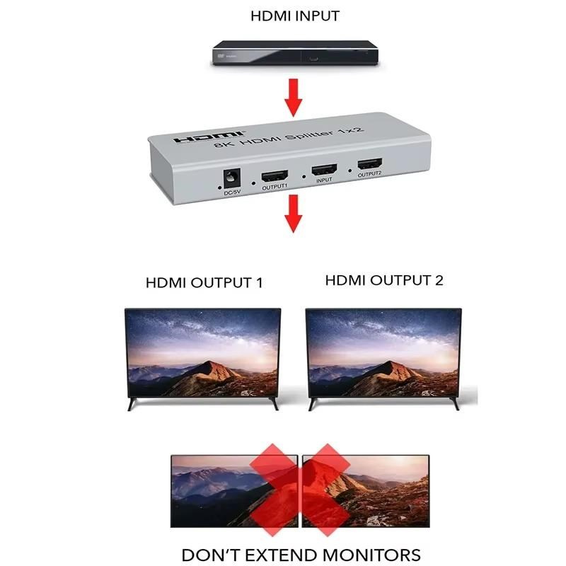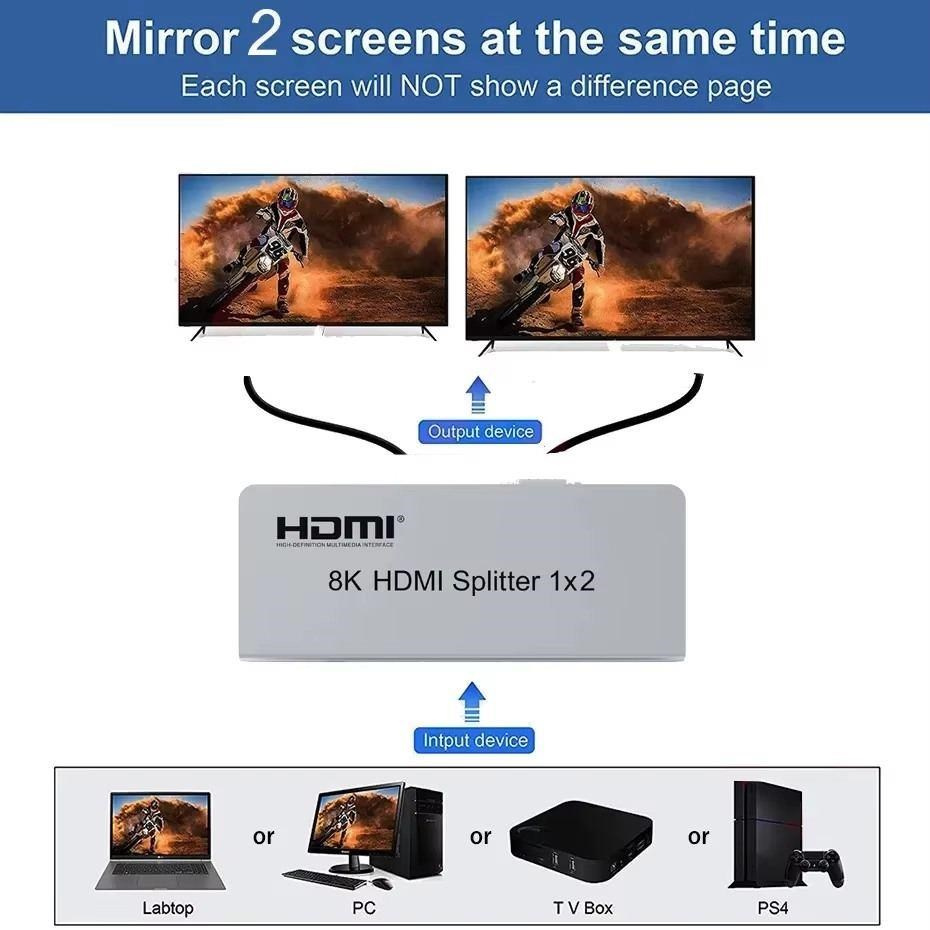 Splitter podporuje HDMI signál s rozlíšením až 8K@60Hz, 4K@120Hz alebo FULL HD 1080p