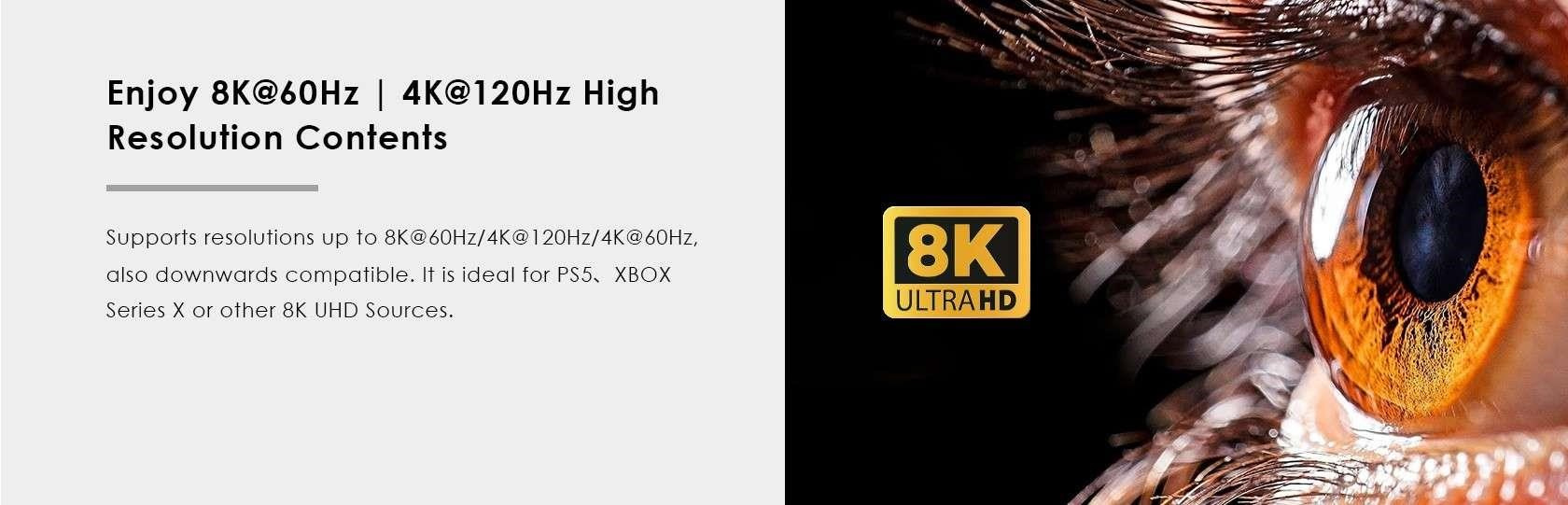 - Rozlíšenie: 8K@60hz, 4K@120Hz, 1080p