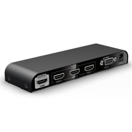 3 HDMI zařízení sdílí 1 HDMI výstupní zařízení (obrazovku). Výběr zařízení tlačítkem nebo dálkovým ovládáním.