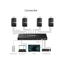 - Štyri servery/PC sa pripojia HDMI a USB káblom do prepínača.