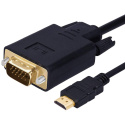 *Převodník integrovaný v kabelu umožňuje propojit zařízení s výstupem HDMI se staršími monitory nebo TV s VGA konektorem. Podporuje rozlišení FULL HD 1080P (1920x1080@60Hz), největší výhoda je integrace převodníku do kabelu, není potřeba přídavné napájení. *Vstup: HDMI konektor Male *Výstup: VGA konektor DB15 Male *Podporuje rozlišení FULL HD 1080P (1920x1080@60Hz) *Kabel obsahuje integrovaný elektronický převodník HDMI signálu na VGA signál *Jednoduše se propojí zdroj signálu s HDMI konektorem s VGA monitorem nebo projektorem. Napájení využívá HDMI konektoru. *Převodník umožňuje propojit zařízení s výstupním signálem HDMI na zobrazovací zařízení nebo TV, monitor s VGA konektorem *Podporuje: HDCP1.0/1.1/1.2; HDMI1.1/1.2/1.3; *Technologie Plug and play; *Podporuje rozlišení: 480i/576i / 480p / 576p / 720p/1080i / 1080p / 60Hz; VGA výstup: 480i/576i / 480p / 576p / 720p/1080i / 1080p / 60Hz *Adaptér je určen pro počítače nebo notebooky s výstupem HDMI, pro převod obrazu na starší analogové VGA monitory. *Zastříknuté konektory *Pozlacené konektory *Barva: černá *Délka kabelu: 2m