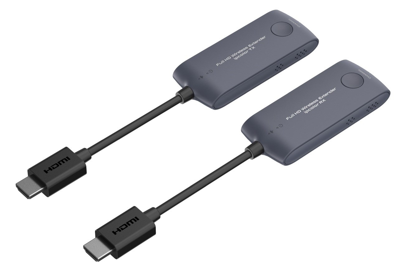 - Vysielacie a prijímacie adaptéry majú krátky HDMI kábel pre jednoduché pripojenie k počítaču a zobrazovaču alebo TV.