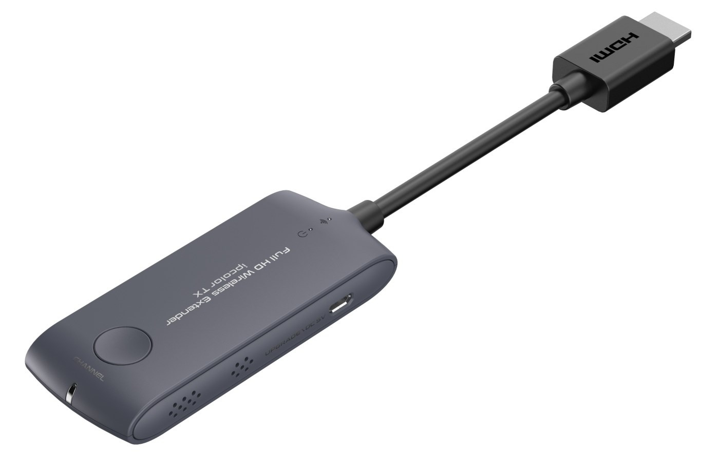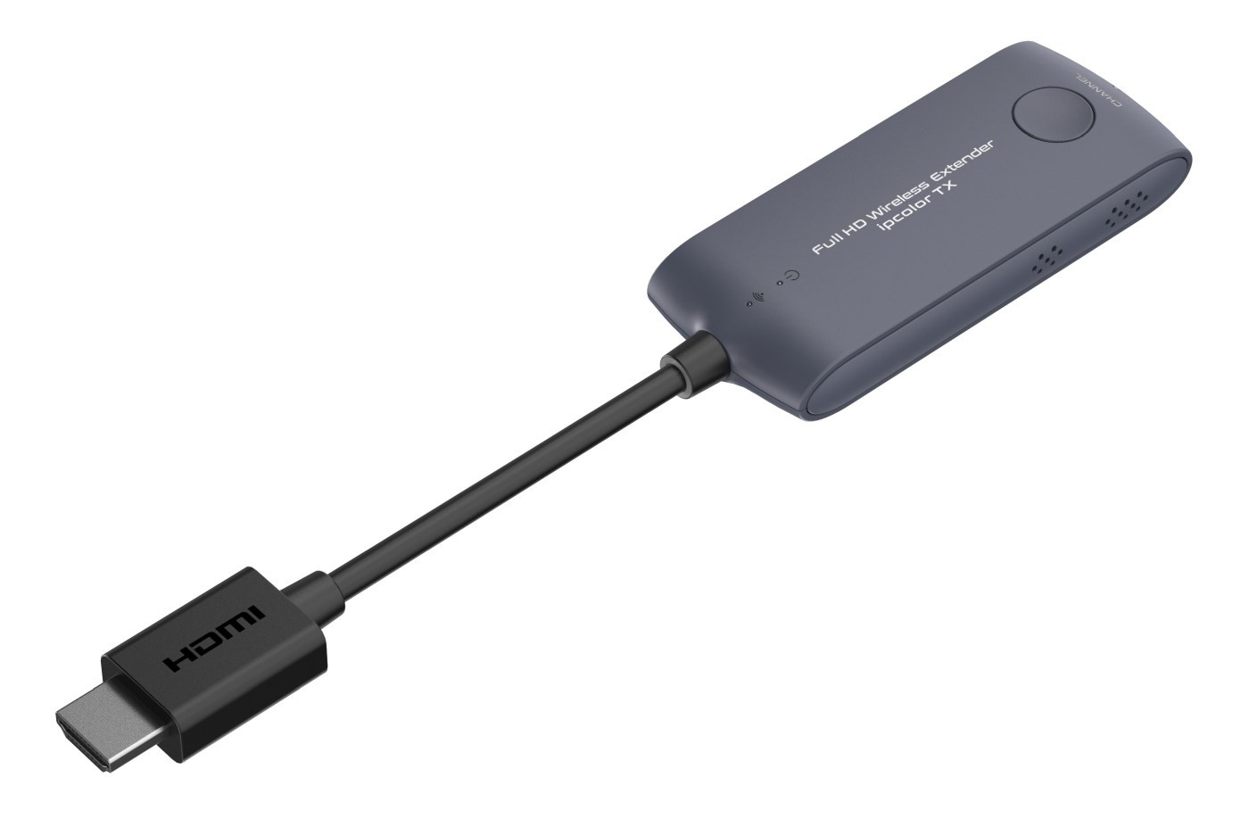 - Vysielač predstavuje malý dongle, ktorý sa zasúva priamo do konektora HDMI počítača, notebooku. Vysielač je napájaný pomocou USB kábla z USB portu.