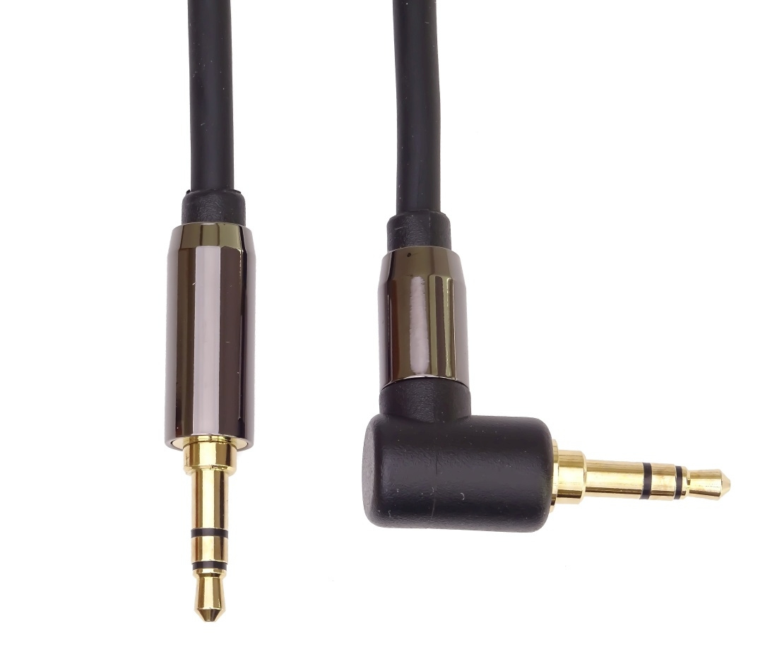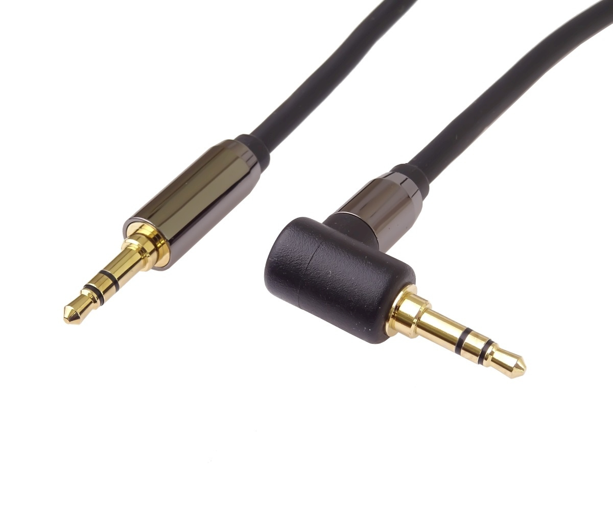 Popis PremiumCord HQ tienený kábel stereo Jack 3.5mm - Jack 3.5mm zahnutý 90 ° 1,5 m