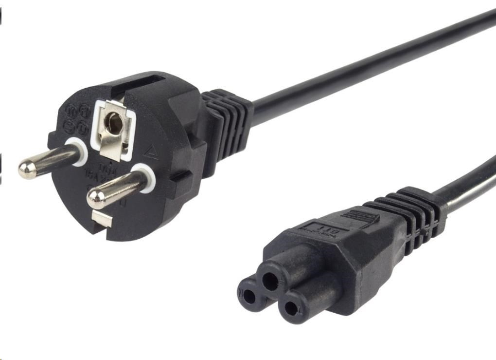 Napájací kábel v čiernej farbe pre notebook. Trojžilový kábel je ukončený zástrčkou typu "Mickey mouse" IEC 320 C5. Parametre a špecifikácie: - Prvý konektor: priama zástrčka cEE 7/7 230V - Druhý konektor: zásuvka IEC 320 C5 - Prierez vodičov: 3x0,75mm2 - Prúdové zaťaženie: max. 2,5A - Napätie max.: 250 V - Farba: čierna - Rovná koncovka - Dĺžka kábla: 2 m - Počet kusov v krabici: 50 ks..