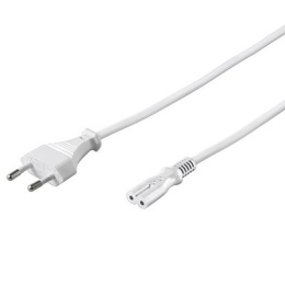 První konektor: Euro male (Type C CEE 7/16) Druhý konektor: Device socket C7 Maximální zatížení: 2.5A 250V max Vodič: H03-VV-H2-F2 měď Průřez vodiče: 2x 0.75 mm2 Napětí max.: 250V Proudové zatížení: max 2,5A Barevné provedení: bílé Počet kusů v kartonu: 100 ks Délka kabelu: 3m