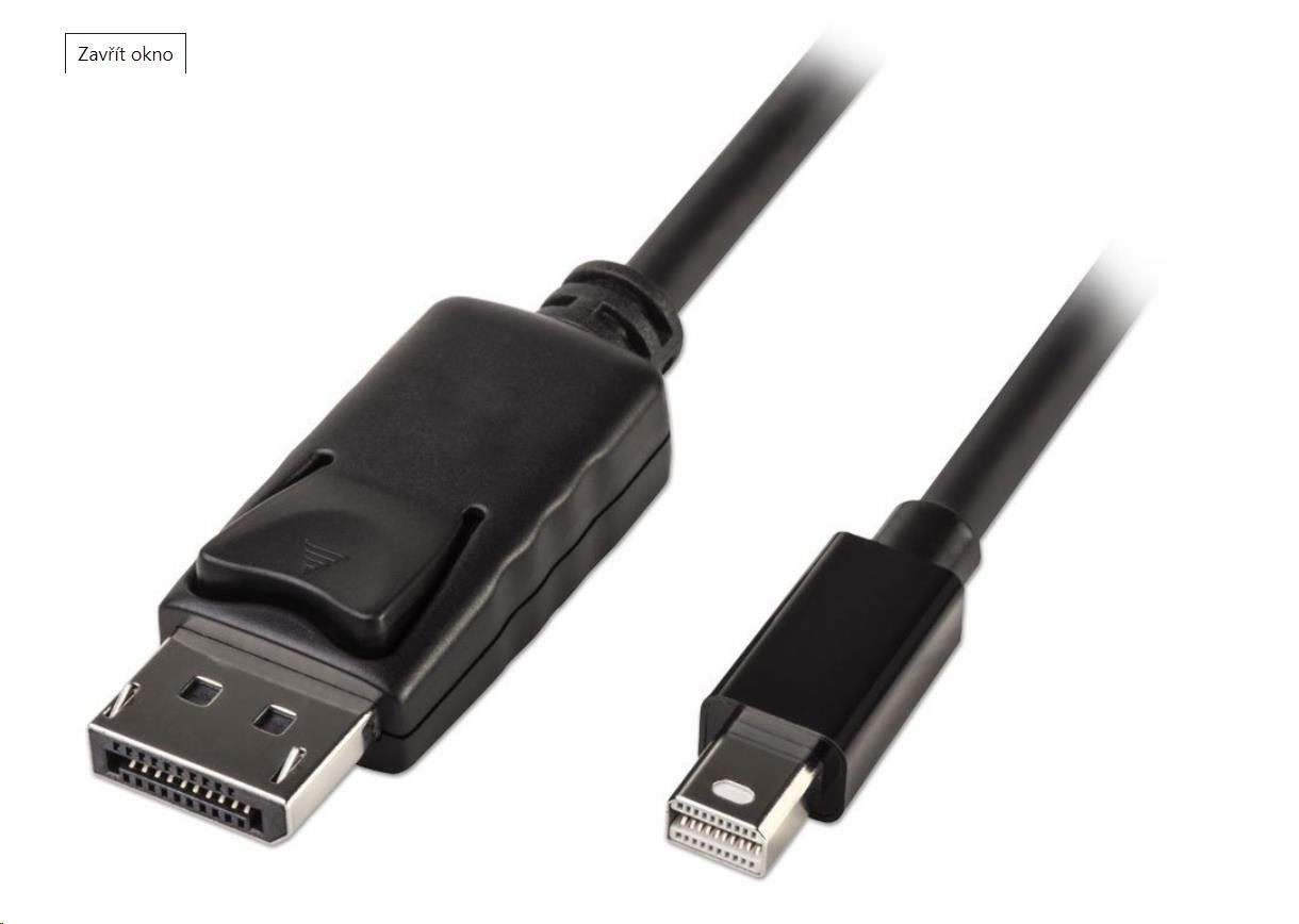 - Konektory: Mini DisplayPort (20pin) samec <=> DisplayPort (20pin) samec