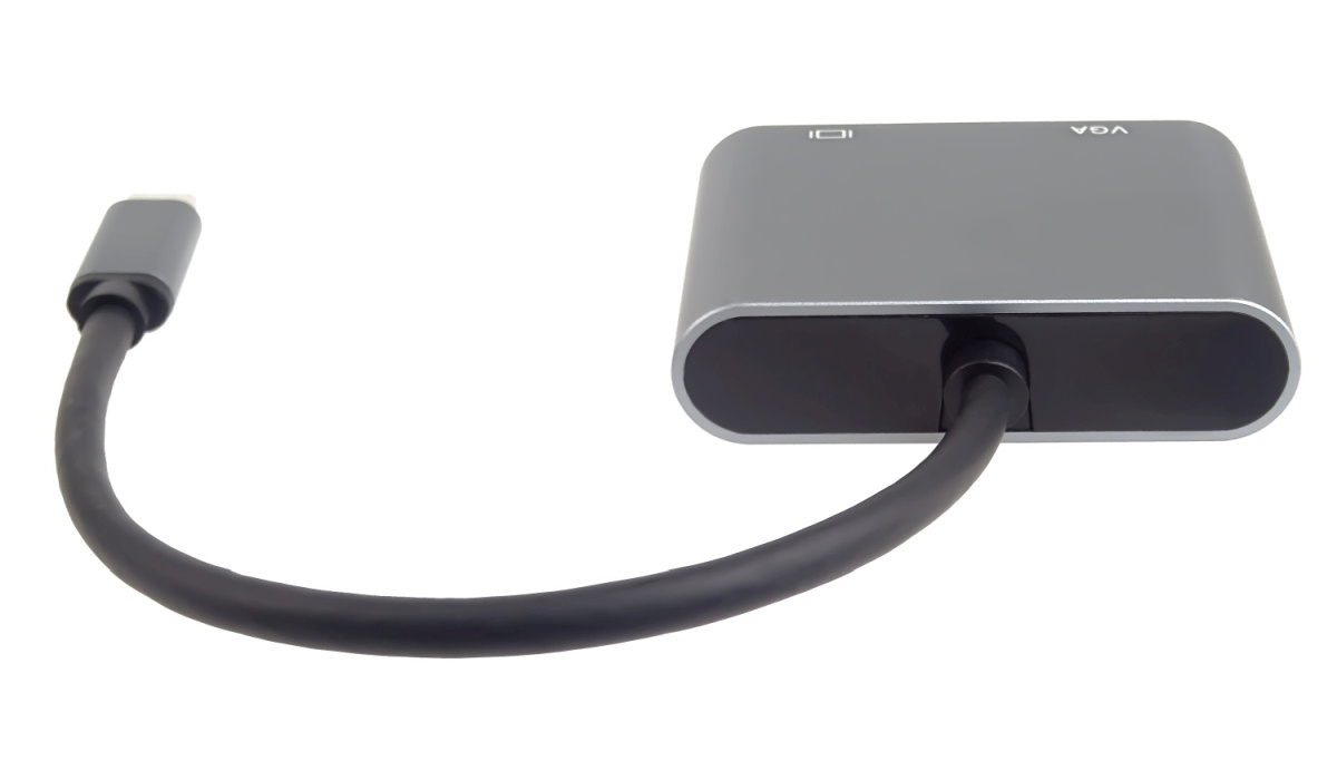 Tento adaptér umožňuje vysoce kvalitní převod videa a zvuku z USB-C konektoru na HDMI a VGA konektor pro dva monitory/TV/projektory. Funguje jako externí grafická karta s dvěma výstupy. Umožní rozšířit stávající plochu na dva monitory nebo ji zrcadlit na další monitor. Umožňuje také pracovat na dvou různých obrazovkách současně. Udělejte si svůj pracovní den více zábavný a pohodlnější, pracujte na dvou obrazovkách současně.