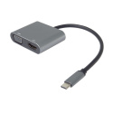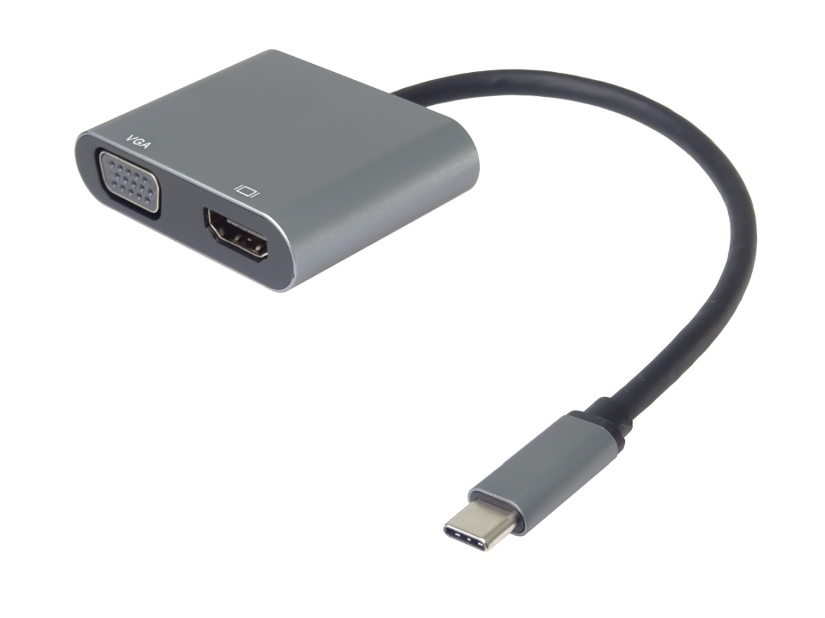 *Rozlišení obrazu HDMI: 4K@30Hz a FULL HD 1080p *Rozlišení obrazu VGA: FULL HD 1080p *Umožňuje nastavit dva mody provozu: Extend Mode (obrazovka se rozšíří na dva monitory) a Mirror Mode (na dvou monitorech se zobrazuje stejný obraz) *Vstupní konektor: USB-C male kompatibilní s thunderbolt3 *Výstupní konektor: HDMI female + VGA DB15 female *Adaptér přenáší digitální obrazu i zvuk *Plug and play. *Typ C konektor s možností zapojení v jakémkoliv směru *Barva: stříbrná a šedá *Kompaktní zastříknuté odolné pouzdro *Balení v sáčku s EAN kódem a popisem