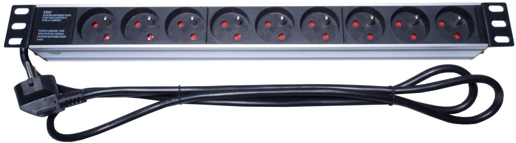 PremiumCord Panel napájecí 1U do 19" racku, 9x230V, 2m kabel