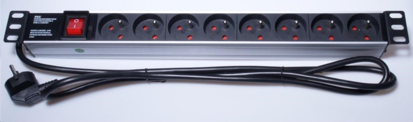 Popis PremiumCord Panel napájecí 1U do 19" racku, 8x230V, 2m kabel, vypínač