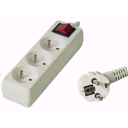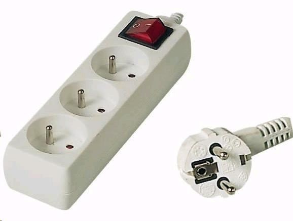 Popis PREMIUMCORD Predlžovací kábel 230V 10m, 3 zásuvky + vypínač, biely
