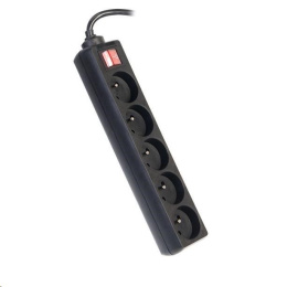 PremiumCord Predlžovací kábel 230V 5m 5 zásuviek + vypínač, čierny