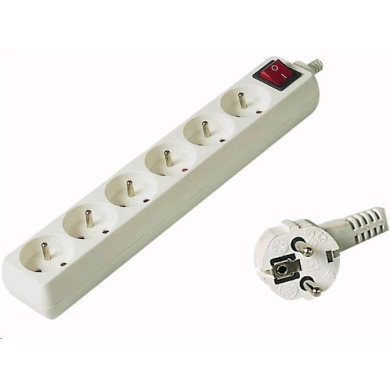 Popis PREMIUMCORD Predlžovací kábel 230V 7m, 6 zásuviek + vypínač, biely