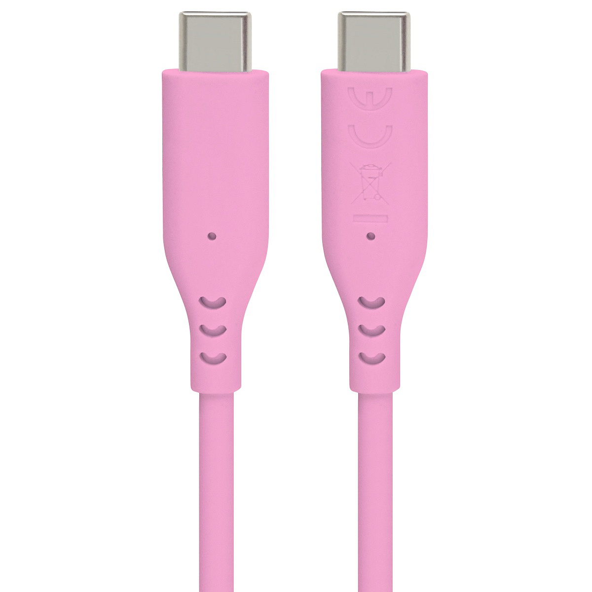 PremiumCord Silikonový kabel s konektory USB-C 60W 480Mbps růžový extra měkký a robustní kabel délky 1,5m