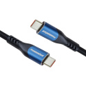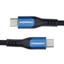- Kábel je vybavený E-Mark čipom – riadiacou elektronikou, ktorá zabezpečuje komunikáciu pripojených zariadení. Tým je ľahšie dosiahnuť maximálnu možnú rýchlosť prenosu dát a nabíjania.