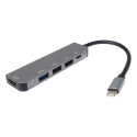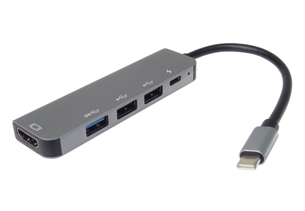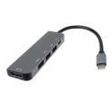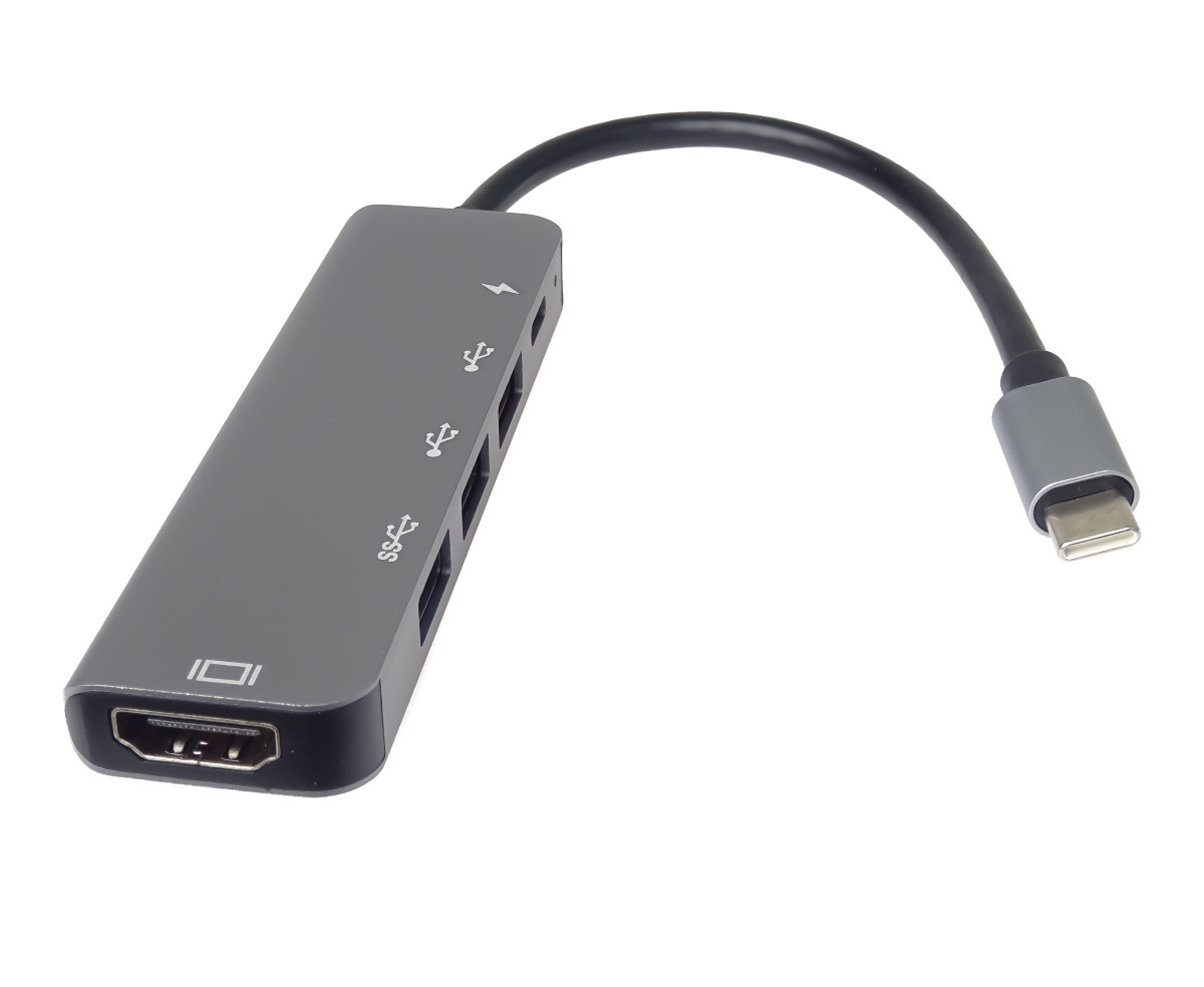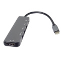 *Rozlišení obrazu HDMI: 4K@30Hz a FULL HD 1080p *Vstupní konektor: USB-C male *Výstupní konektor: HDMI female + 2xUSB2.0 female + USB3.0 female + PD (power delivery) *PD Konektor USB-C pro nabíjení 20V až 5A, *USB3.0 a USB2.0 konektor pro připojení flash paměti nebo jiného USB zařízení nebo pro napájení přes USB *Adaptér přenáší digitální obrazu i zvuk *Plug and play. *Typ C konektor s možností zapojení v jakémkoliv směru *Barva: šedá *Kompaktní zastříknuté odolné pouzdro *Balení v sáčku s EAN kódem a popisem