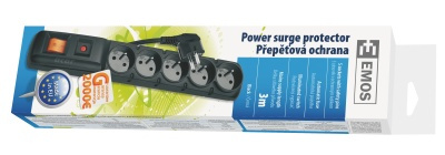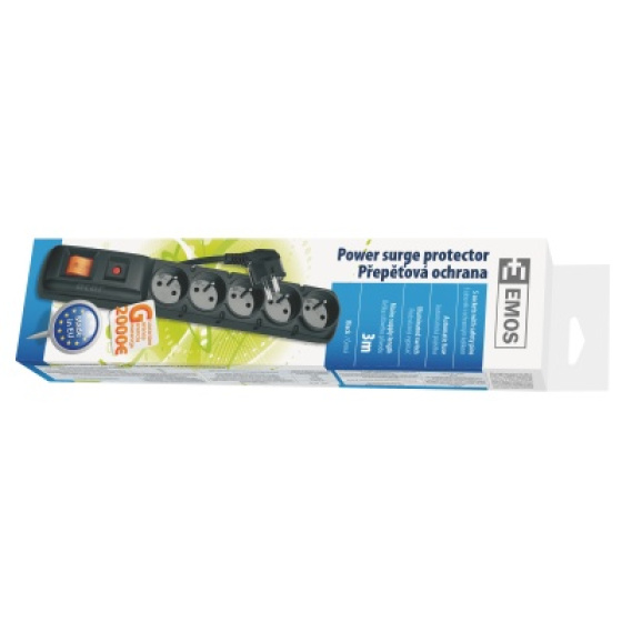 - přepěťová ochrana, 5 zásuvek 10A/250 V~ - podsvícený síťový vypínač, automatická pojistka s časovým zpožděním - 4 možné směry uspořádání síťového přívodu - jmenovité napětí UN 230 V / 50 Hz - jmenovitý proud IN 10 A - jištění: jedna automatická pojistka s časovým zpožděním 10 A/250 V - svodový proud: <0,5 mA - doba odezvy: <25 ns - max. napětí UC: 250 V / 50 Hz - ochranná úroveň UP <=1,3 kV (L/N) - jmenovitý vybíjecí proud in 2 kA (L/N) - 8/20µs - max. vybíjecí proud imax 6,5 kA (L/N) - 8/20 µs - barva: černá - rozměr: 330 x 54 x 55 mm - délka: 3 m