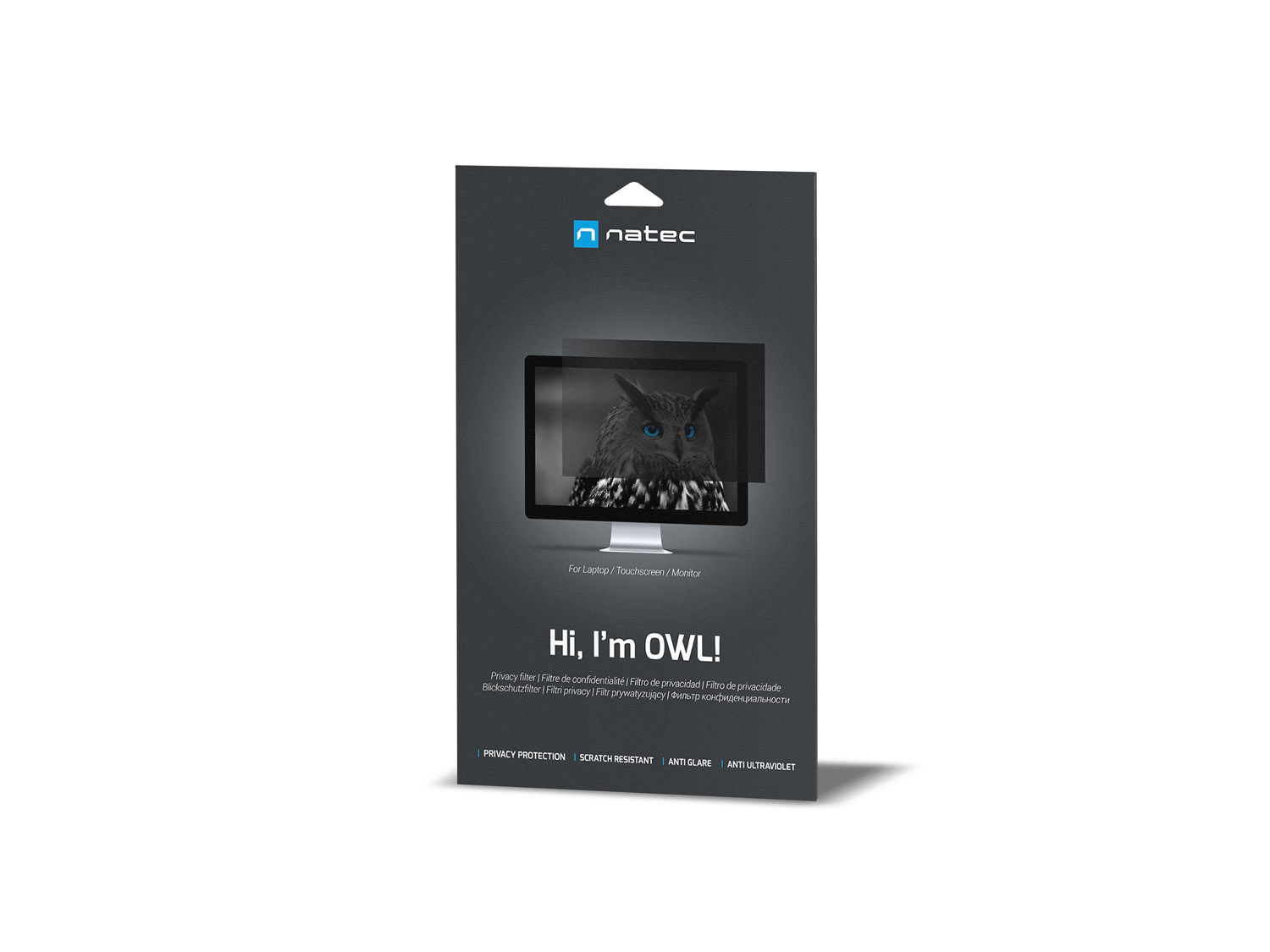 Filtr pro ochranu soukromí Natec Owl je nenápadný překryvný prvek na obrazovku notebooku nebo monitoru počítače. Plní důležitou funkci zabezpečení osobních a důvěrných údajů. Filtr je k dispozici v mnoha velikostech: 13,3", 14", 15,6", 21,5", 23,8", 24", 27".