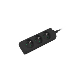 - Počet zásuvek: 3 - Typ zásuvky: Francouzská CEE 7/5 - Typ zástrčky: Zásuvka: Uni-Schuko CEE 7/7 - Dráty: Vnitřní kabel: 3 x 1,0 mm CU - Maximální příkon 2500 W - Ochrana proti rušení dětmi - Odolnost IP20 - Barva: černá - Délka kabelu: 1,5 m