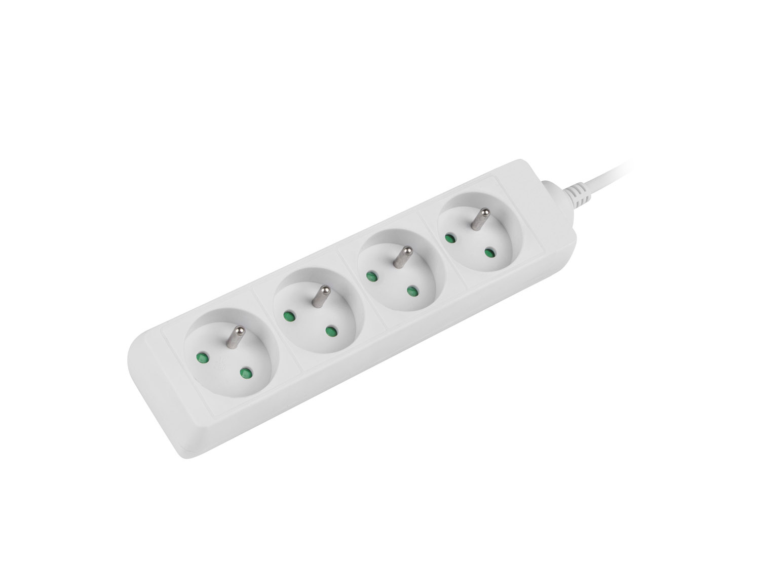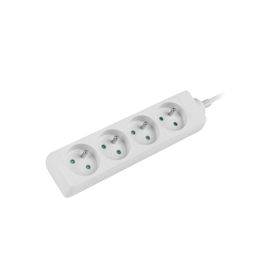 - Počet zásuvek: 4 - Typ zásuvky: Francouzská CEE 7/5 - Typ zástrčky: CEE CEE 5,5 mm: Zásuvka: Uni-Schuko CEE 7/7 - Dráty: Vnitřní kabel: 3 x 1,0 mm CU - Maximální příkon 2500 W - Ochrana proti rušení dětmi - Odolnost IP20 - Barva: bílá - Délka kabelu: 1,5 m