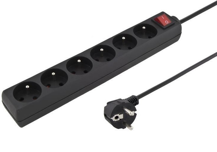 Predlžovací prívod 230V 3m 6 zásuviek, vyp, čierny