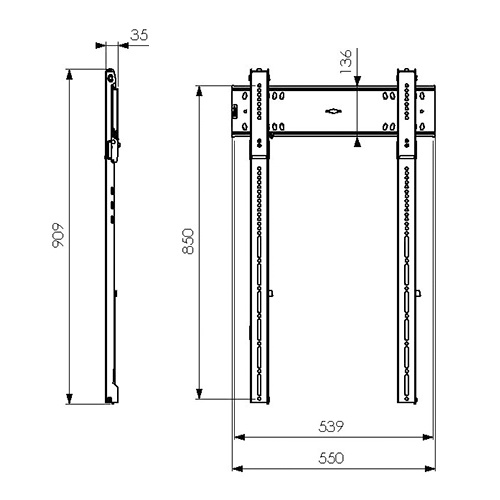 oválné otvory pro rychlou úpravu horizontální roviny i při nepřesném vyvrtání otvorů