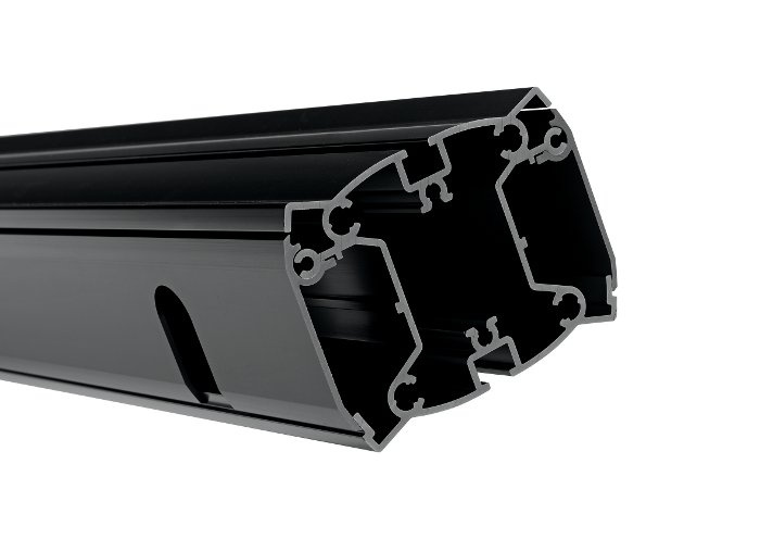 2 široké postranní kanály pro vedení kabelů se zaklapávacími kovovými kryty