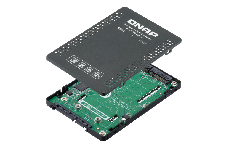 Popis QNAP adaptér QDA-A2MAR (2x M.2 SSD SATA sloty v 2,5" SATA rámčeku)