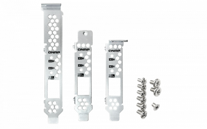 Tyto držáky síťových karet QNAP s dlouhými, plochými a krátkými profily jsou v hodné pro Qm2-2X10G1T (A), který podporuje síťové karty QM2-2P10G1TA a QM2-2S10G1TA.