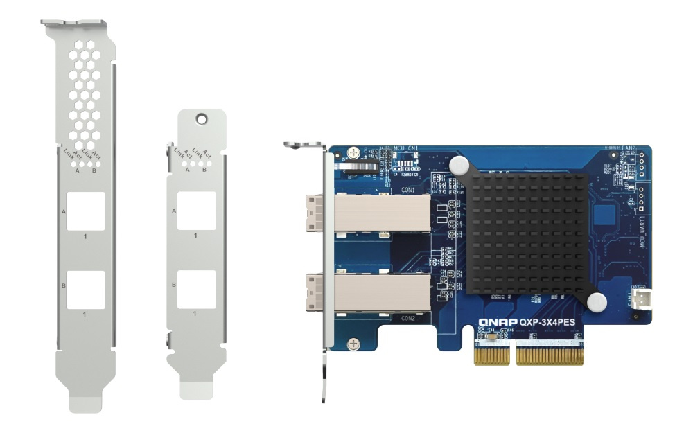 QXP-3X4PES dvouportová rozšiřující karta PCIe Gen3 x4Odkaz na web výrobce: https://www.qnap.com/en/product/qxp-3x4pes Funkce PCIe karta QXP-3X4PES je navržena pro rozšíření kapacity QuTS hero nebo QTS NAS připojením k rozhraní QNAP TL PCIe SATA JBOD. Až dvanáct JBOD může být propojeno pomocí vysokorychlostních kabelů, aby bylo možné škálovat úložiště na úrovni petabajtů a zvládnout tak exponenciální nárůst dat způsobený archivací/zálohováním záznamů sledování, multimediálních souborů RAW, velkých dat a virtualizačních aplikací. *Rozšiřující karta QXP-3X4PES PCIe Gen 3 x4 poskytuje rychlost přenosu dat až 32Gb/s. *NAS s QXP-3X4PES může být sériově propojen s až dvanácti TL PCIe Interface SATA JBOD, které podporují SATA HDD. To poskytuje potenciál pro uložení až 2,9PB (počítáno s použitím 22TB disků ve dvanácti 16šachtových skříních). SPECIFIKACEZáslepka/držák *nízký profil (výchozí) *nízký profil plochý *plná výška Kabel *2portový SFF-8644 Rozměry (DxŠxV) *102,65×68,9×19mm Standardní záruka *3 roky Více informací se dozvíte na stránkách výrobce