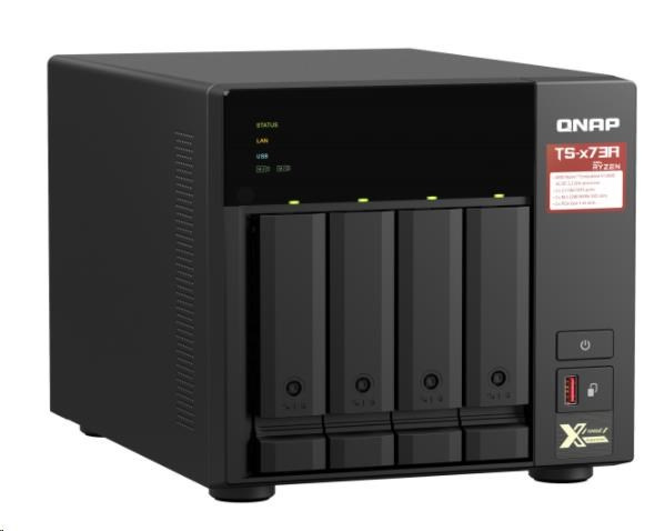 Disponuje štvorjadrovým procesorom AMD Ryzen™ rady V1000 V1500B, ktorý poskytuje vysoký výkon systému vďaka až štyrom jadrám / 8 vláknam a Turbo Core až 2,2 GHz. Zariadenie TS-473A má dva porty 2,5GbE RJ45 a dva sloty PCIe Gen 3, aby ste mohli flexibilne nasadiť siete 5GbE/10GbE. Dva sloty M.2 NVMe SSD pre technológiu Qtier a SSD Cache umožňujú neustálu optimalizáciu úložiska. Zariadenie TS-473A podporuje systémy QTS a QuTS hero, čo používateľom umožňuje pružne prepínať operačný systém podľa ich požiadaviek.