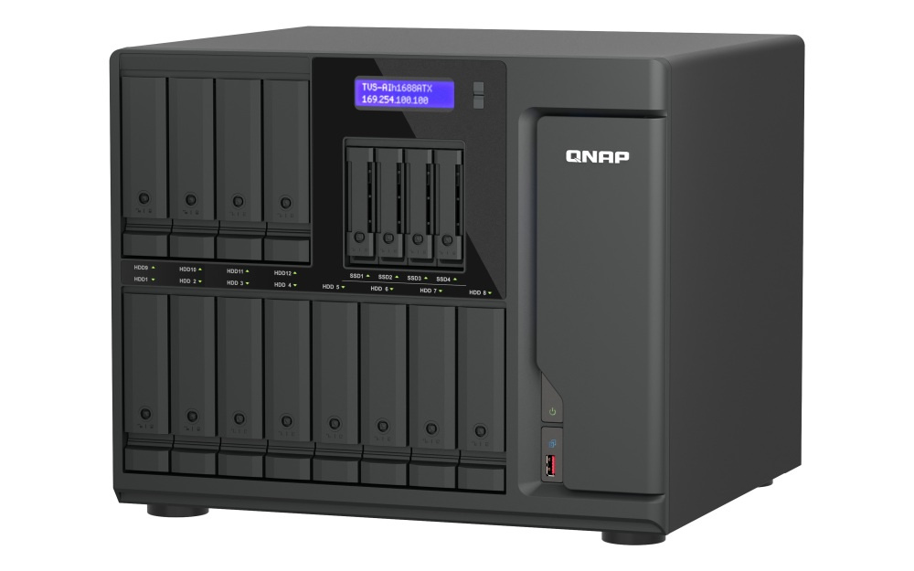 Popis QNAP TVS-AIh1688ATX-U7-32G (Ultra 7, ZFS, 32GB DDR5 ECC RAM, 12x 3,5" + 4x 2,5", 2x 2,5GbE, 2x 10GbE)