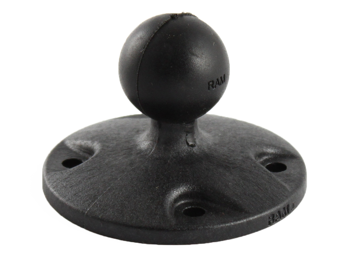 RAP-B-202U kruhový adaptér / úchyt na rovné povrchy s 1" čepem. Adaptér má průměr 6,35 cm a má předvrtaných 7 děr, z toho 4 dle průmyslového vzoru děr AMPS. Použití: jako adaptér s 1" čepem pro propojení držáků RAM s rameny pro 1" čepy. Zejména se používá k těžším univerzálním držákům pro velké tablety. Pro všechny ostatní držáky se používá lichoběžníkový adaptér RAP-B-238U jako úchyt na rovné povrchy s 1" čepem. Je určen pro pevné nerozebiratelné připevnění držáku na rovnou plochu. Typicky pomocí vrutů na vhodné místo palubní desky nákladního auta, na palubu lodi, board kajaku atd. Přednosti adaptéru: Kompatibilní se systémem ramen a úchytů RAM mount Odpovídá standardu AMPS Doživotní záruka RAM mount Materiál: Tvrzený plast Váha: 45 g Velikost kulového čepu: 1", pryžový, velikosti „B“