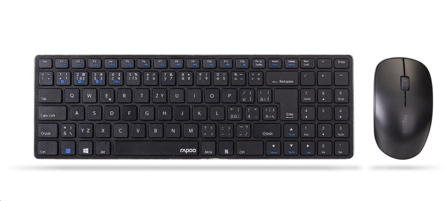 Súprava klávesnice a myši RAPOO 9300M, bezdrôtová viacrežimová tenká myš a ultratenká klávesnica, čierna