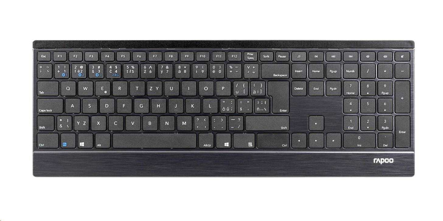 Rapoo E9500M viacrežimová bezdrôtová ultratenká klávesnica čierna CZ/SK