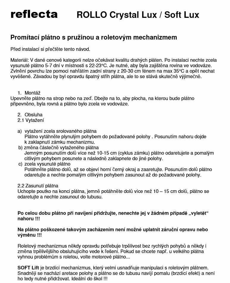 < convertible="true" >RC motorové plátno MOTOR CrystalLine 240x189cm, viditeľná plocha 4:3, 116"/295cm, 236x177cm, biely hranatý kovový tubus 9x267cm/15kg, uchytenie na stenu alebo strop, materiál BetaLux - biela 0,35 tkanina 300g/m2 s 2cm čiernym okrajom a zadnou stranou, Gain=1,0, pozorovací uhol 120°.Lux - biely matný povrch pre maximálne verný a kontrastný obraz pri aspoň čiastočnom zatemnení. PVC materiál s textilným základom vytvára rovný povrch bez zvlnení, ale na okrajoch môže dochádzať k prehnutiu - postupne mizne. Jednoduché uchytenie 4 skrutkami na plastových bočných stranách plátna - stena alebo strop. Prívodný elektrický kábel je na ľavej strane tubusu (pri pohľade na upevnené plátno). Súčasťou dodávky je RC diaľkové ovládanie. Krabička RC prijímača (možno pripevniť na stenu) je na prívodnom sieťovom kábli a na jej boku sú ďalšie tlačidlá na ovládanie plátna.