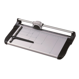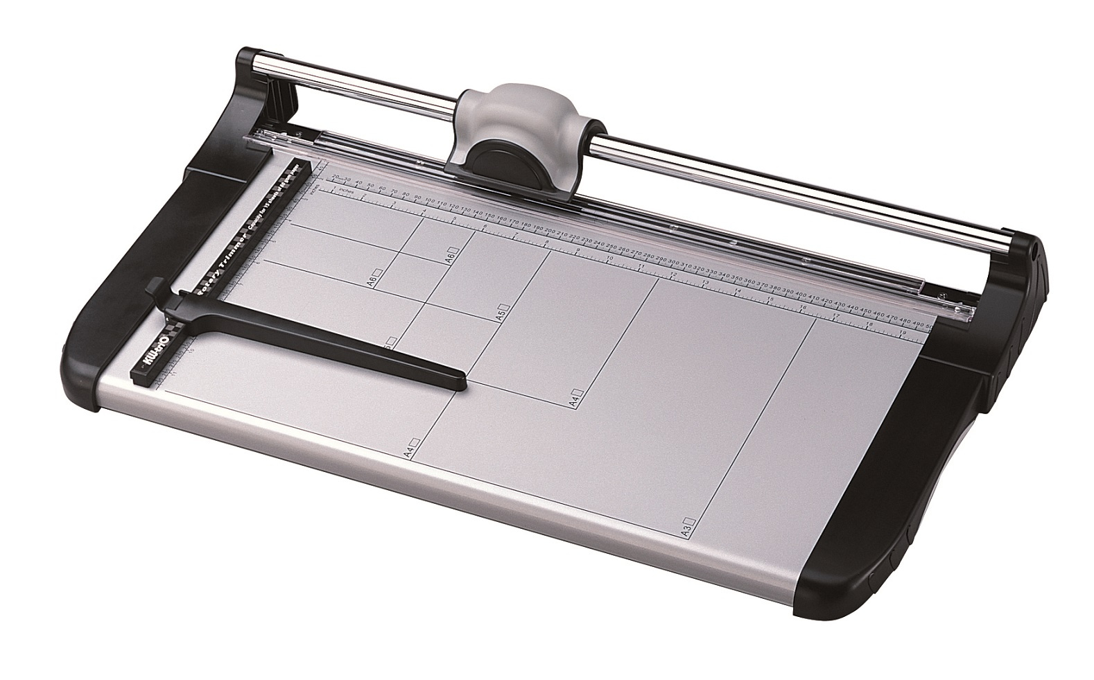 Kvalitní kolečková řezačka s pevnou kovovou základnou a řeznou hlavou umístěnou na kovové tyči, určena pro formát A3+. Pracovní stůl je vybaven natištěnými měřítky a posuvnou zarážkou souběžnou s přímkou řezu. Díky rotačnímu noži z tvrzené nerezové oceli jsou řezačky KW Trio vhodné pro řezání i více listů nebo archů.