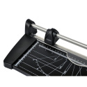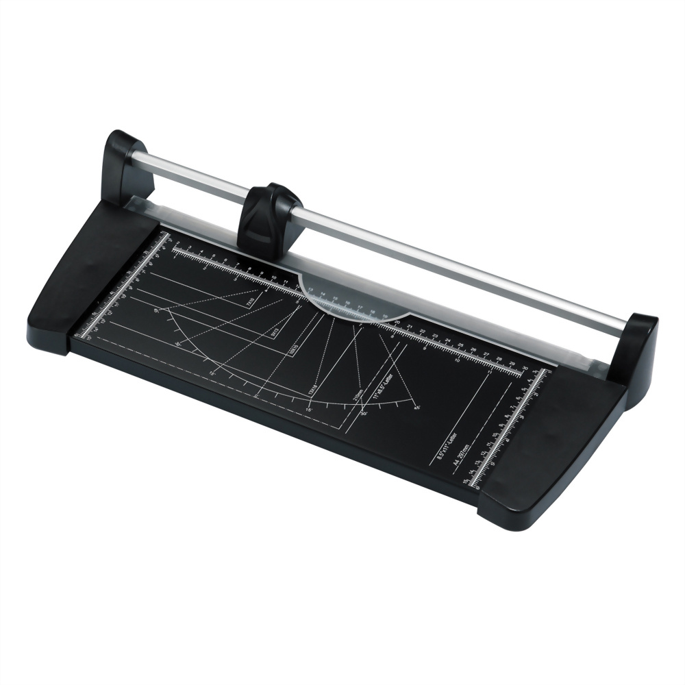 Typ řezačky: kolečkové Maximální formát A4 Délka řezu: 318 mm Maximální tloušťka řezu: 1 mm Maximální kapacita řezu: 10 listů / 70g papíru Přítlak stohu papíru: automaticky Rozměry pracovní desky: 320 x 157 mm Předkreslené formáty na pracovní desce: A5-A4 Rozměry (Š x V x H): 441mm x 69mm x 196mm Hmotnost: 1.2 kg