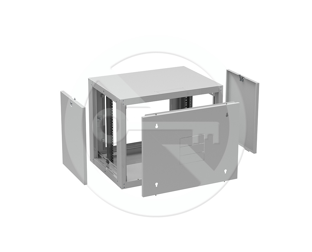 Konstrukce * dveře v provedení plechové nebo s bezpečnostním sklem (EN 12150-1), otevíratelné v úhlu 110°, skryté panty, možnost zvolit pravé nebo levé otevírání * plech o tloušťce 0,8 mm, nosné pozinkované lišty 1,5 mm * ve vrchním, spodním víku a bocích perforace pro snadné odvětrávání * vstupy pro kabeláž ve stropě, dně, zádech skříně v podobě vylamovacích otvorů * v zadní stěně 4 - 6 otvorů pro uchycení na stěnu, stěna montovatelná samostatně * nosnost 65 kg (při připevnění na stěně v rovnoměrném statickém zatížení) * stupeň krytí IP 20