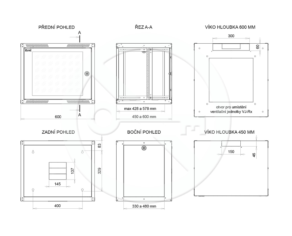 Vyráběné varianty Výška: 6, 9, 12, 16U, 20U Šířka: 600 mm Hloubka: 450 a 600 mm