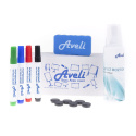 Základná súprava pomôcok na fixky. Sada obsahuje: 4 farebné fixky na biele tabule, 250 ml čistiaceho spreja, 6 okrúhlych magnetov s priemerom 24 mm, 1 magnetickú stierku...