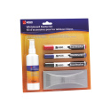 Sada základních pomůcek k popisovacím tabulím v blistru. Vhodné pro všechny typy bílých tabulí stíratelných za sucha.