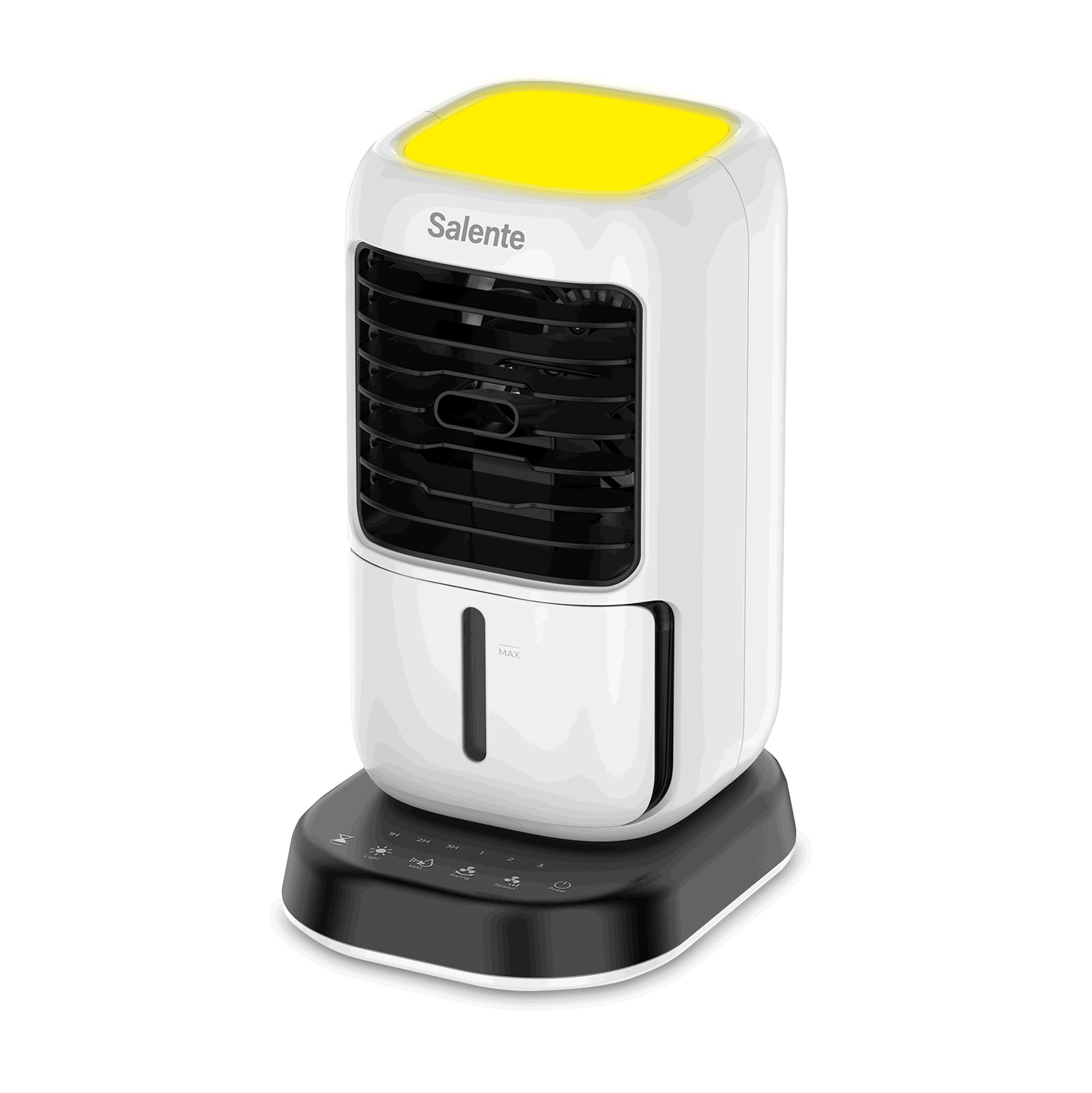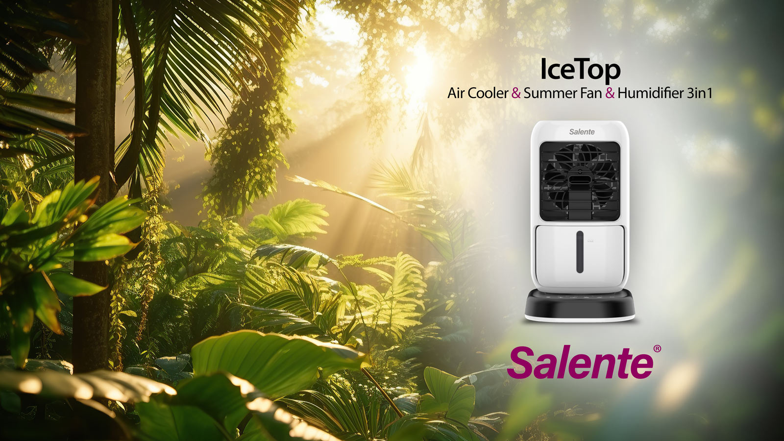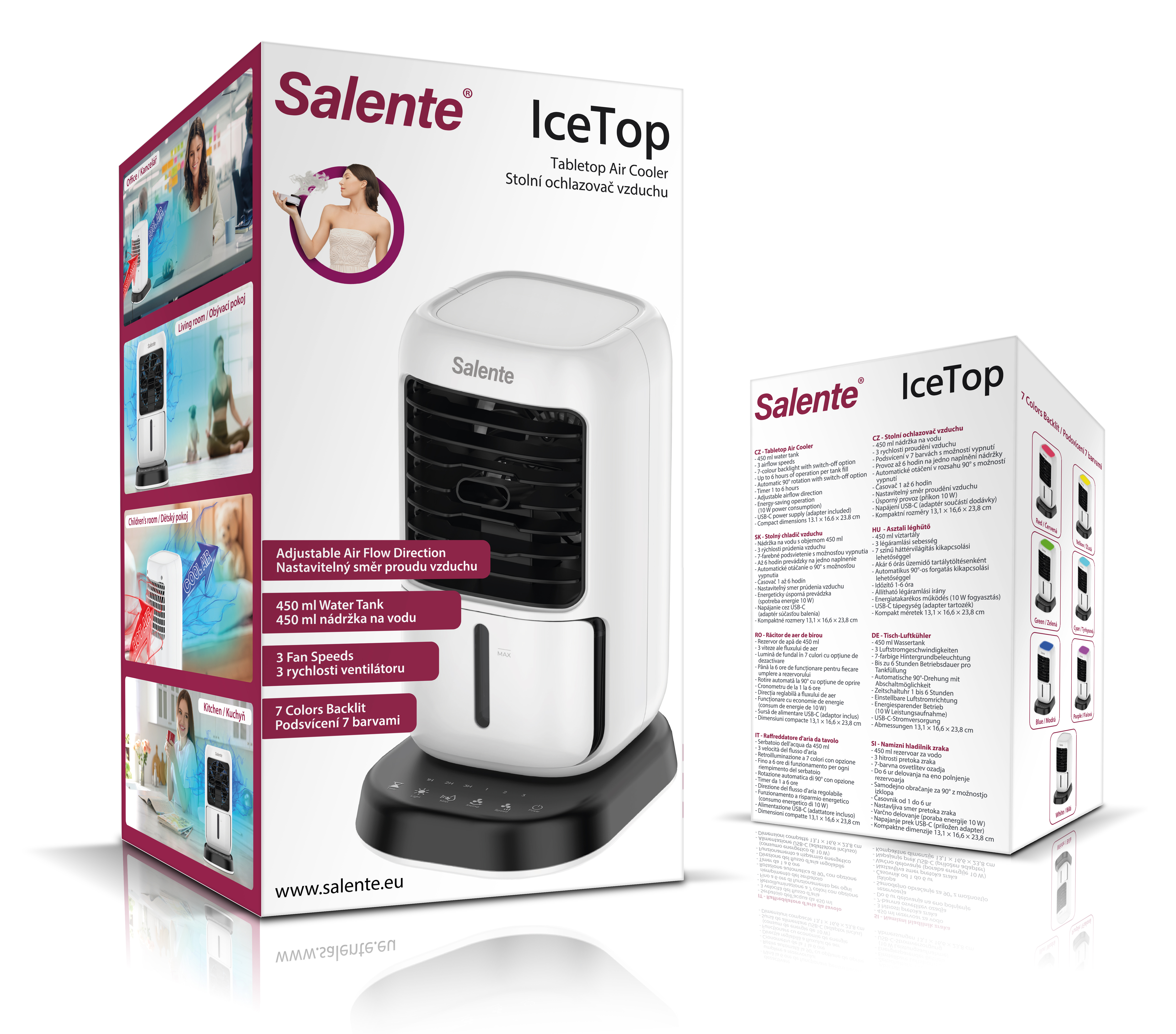 Multifunkční zařízení Salente IceTop plní funkci malého stolního ochlazovače vzduchu, který vám v horkých letních dnech nebo teplých prostorách bez možnosti klimatizace zpříjemní práci i soukromí. Současně plní funkci zvlhčovače a nedochází tak při jeho provozu k vysušování vzduchu jako je tomu u standardních klimatizací. Při provozu bez naplněné vodní nádržky plní funkci klasického stolního letního ventilátoru. Na jedno naplnění vodní nádržky vydrží v provozu 6 hodin.