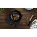 S tímto jednoplotýnkovým indukčním vařičem můžete vařit v nádobách o průměru 12 až 26 cm, přičemž přesnou velikost hrnce či pánve spotřebič rozpozná automaticky. Navíc se automaticky vypne, jakmile zvednete hrnec z plotýnky, takže nehrozí žádné plýtvání energií ani nežádoucí přehřátí (kromě toho se také vařič sám vypíná po 2 hodinách nečinnosti). Bezpečnostní prvky jsou tu ostatně opravdu promyšlené – zařízení disponuje i gumovými protiskluzovými nožičkami pro dokonalou stabilitu a pětinásobnou ochranou, která zahrnuje prvky zamezující přehřátí (varné desky i elektroniky), přepětí, podpětí i použití nevhodného nádobí.