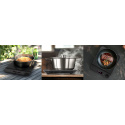 Chcete indukční vařič zapnout či vypnout? Potřebujete nastavit správnou teplotu nebo přizpůsobit výkon vaření? Anebo chcete využít časovač, aby se po uplynutí nastavené doby (až 180 min) spotřebič automaticky vypnul? Není nic jednoduššího! Se všemi zmíněnými úkony si poradíte levou zadní díky multifunkčnímu otočnému ovladači, který umožňuje rychlé a intuitivní ovládání bez zbytečného mačkání tlačítek.