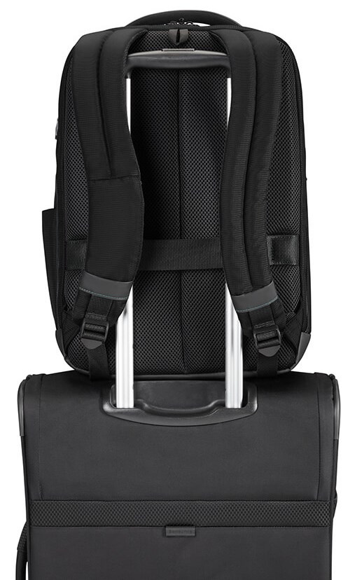 polstrovaný prostor na notebook 35,6 cm / 14" prostor na tablet 26,7 / 10,5" ergonomické popruhy kapsa na dokumenty kapsa na zip z přední strany organizér smart sleeve - návlekový pásek sloužící ke snadnému připevnění na rukojeť kufru rozměr 28 x 40 x 13,5 váha: 0,9 kg objem: 16,5 l Záruka 2 roky.