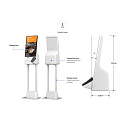 Kiosek Samsung tvoří displejová sekce a připojovací box (Connection Box), spolu s volitelným stojanem. Design umožňuje čisté a praktické vedení kabelů, zatímco díky šedobílé barevnosti a jednoduchému stojanu kiosek stylově zapadne do jakéhokoliv prodejního interiéru.
